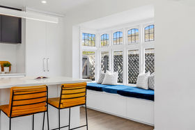 The kitchen is located within a generous north-facing dining and living room, where there's plenty of room for the family to relax in at the end of the day. Indoor-outdoor flow has clearly been a focus of this renovation, with the living room opening out through glass bifold doors onto a large deck, where you can enjoy dinner or a glass of wine on a warm summer evening. Children and pets will be safe and secure within the private and sheltered backyard.